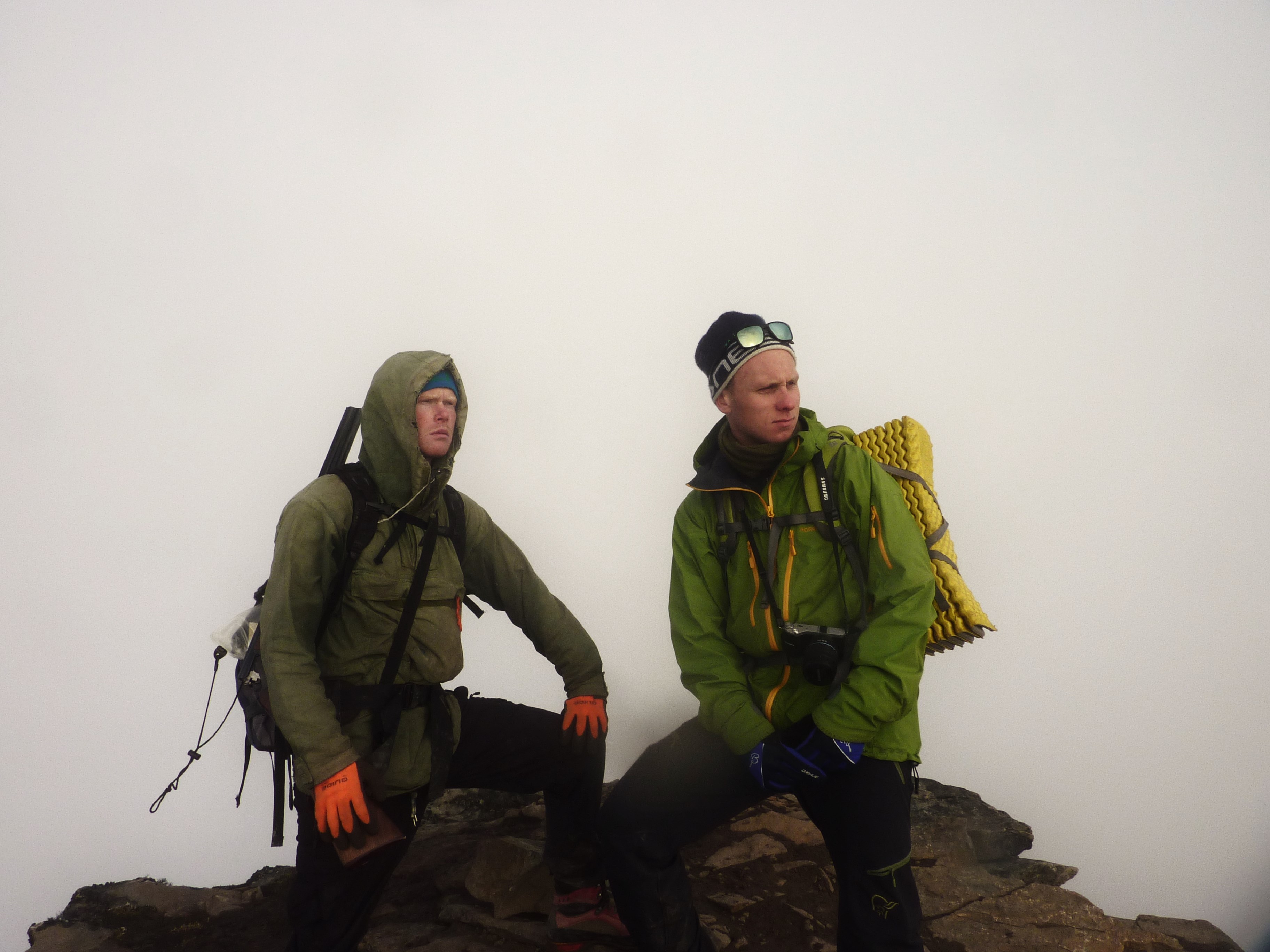 Ascending the cloudy summit of Trollstein, “The Troll Stone”