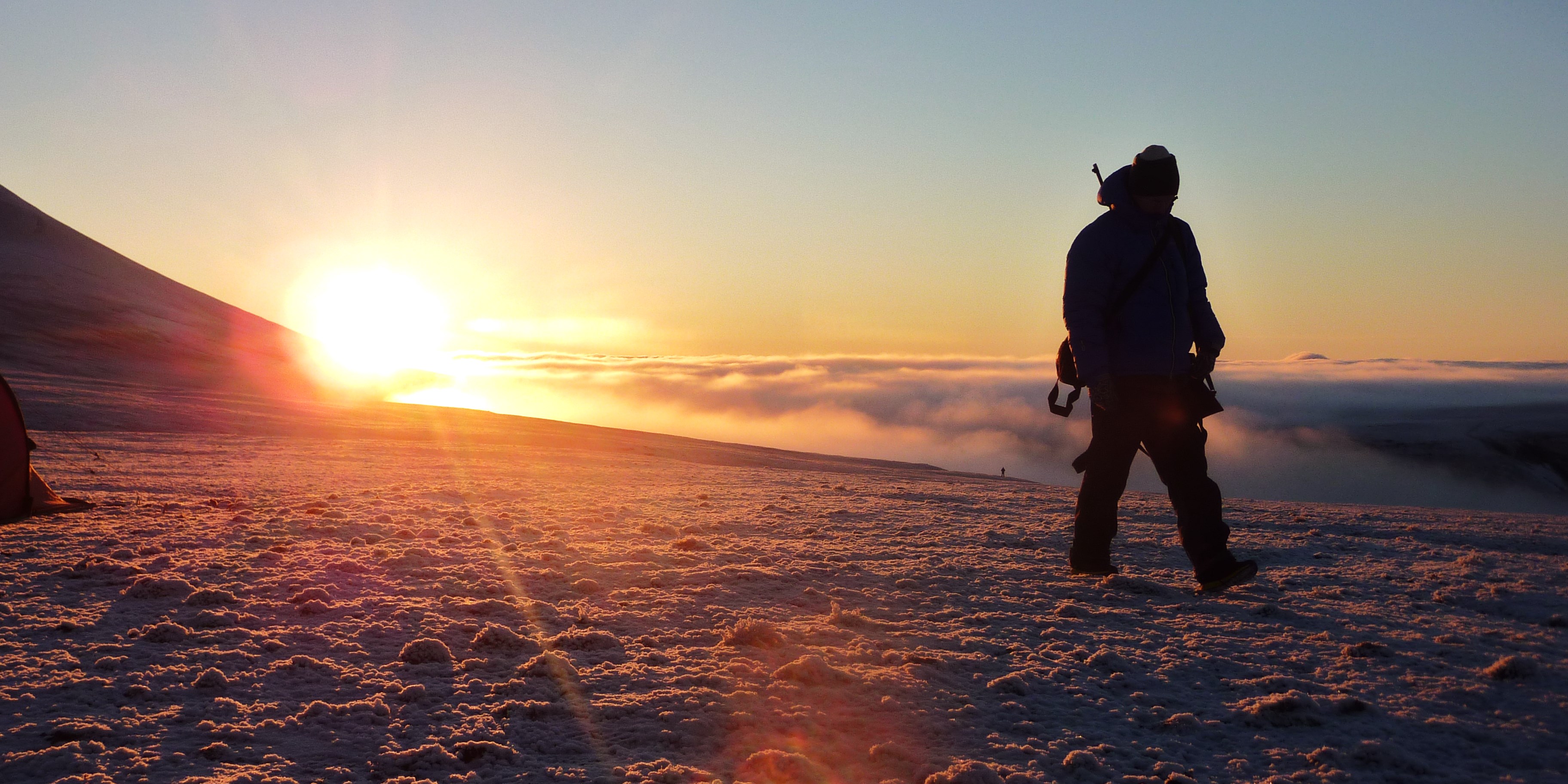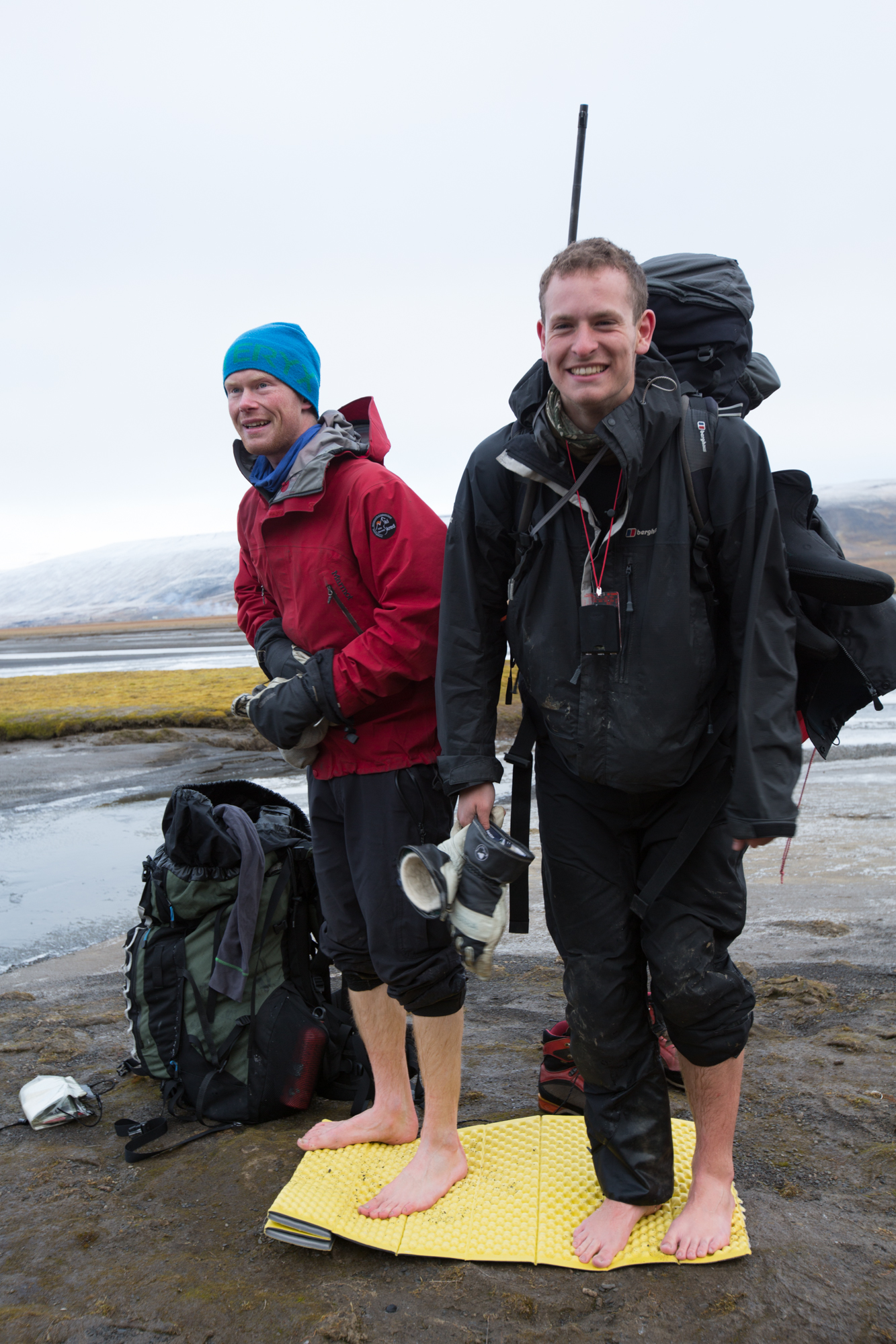 Myself and my fellow students have just returned from an epic eight-day trek to Barentsburg; a Russian mining settlement on Svalbard’s West Coast. This was a hard expedition. Travelling 150km on foot; over rough terrain, through rivers and up mountains, all the while wearing plastic boots that freeze solid every night and carrying 30kgs of equipment is one of my more challenging encounters with the Svalbard wilderness. I had back-pain for the first time in my life by the end of the first day and by the eighth I was barely equal to hobbling back into Longyearbyen, so blistered and raw were my feet. I sweated and froze in equal measure, never seeming to find that happy median in between.