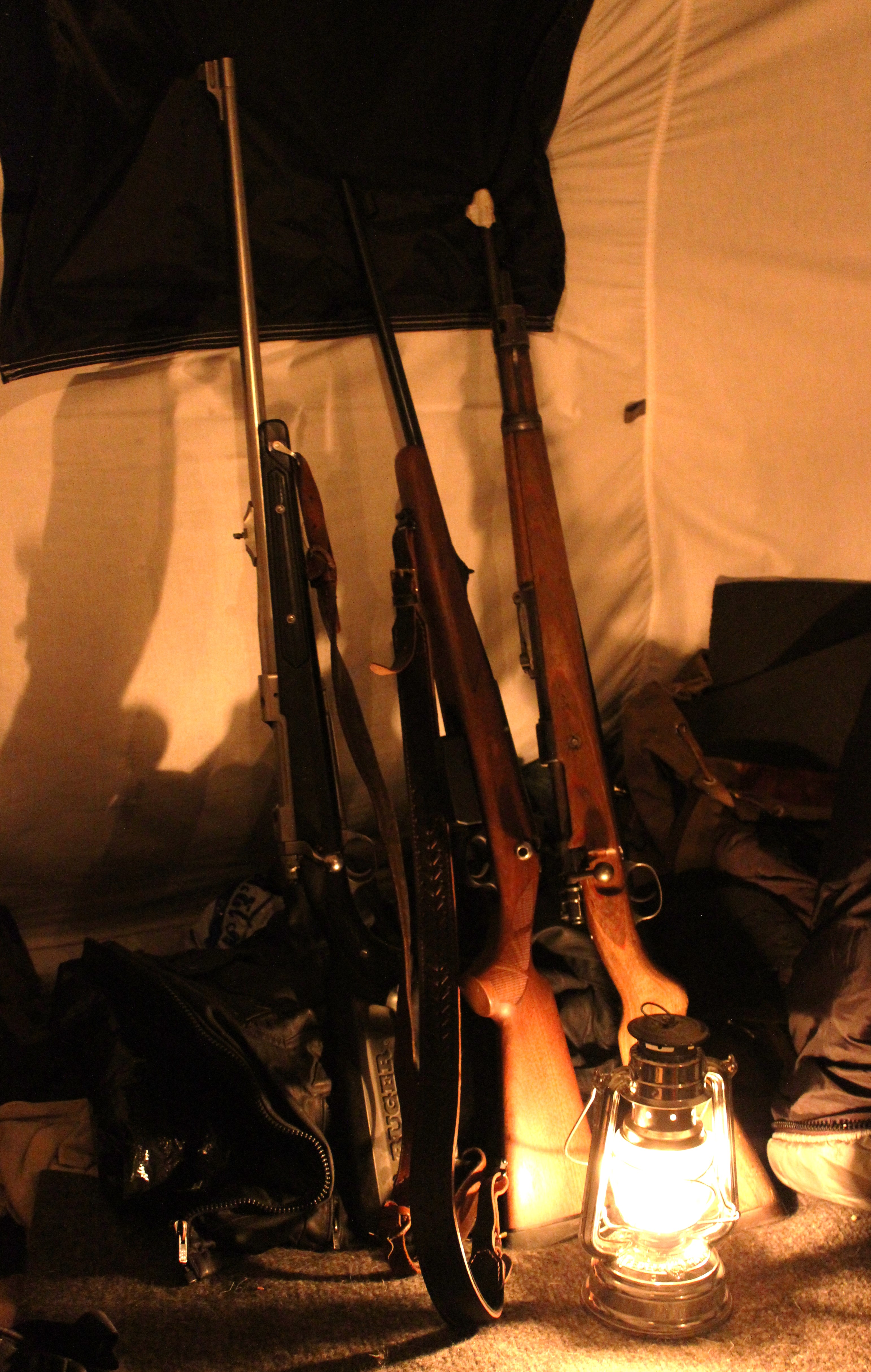 Polar bear defence is being taken seriously. Centre is my links 30-06, with Cees’ WWII Mauser to the right. On the left is Morten’s cannon – a massive .338 caliber Ruger