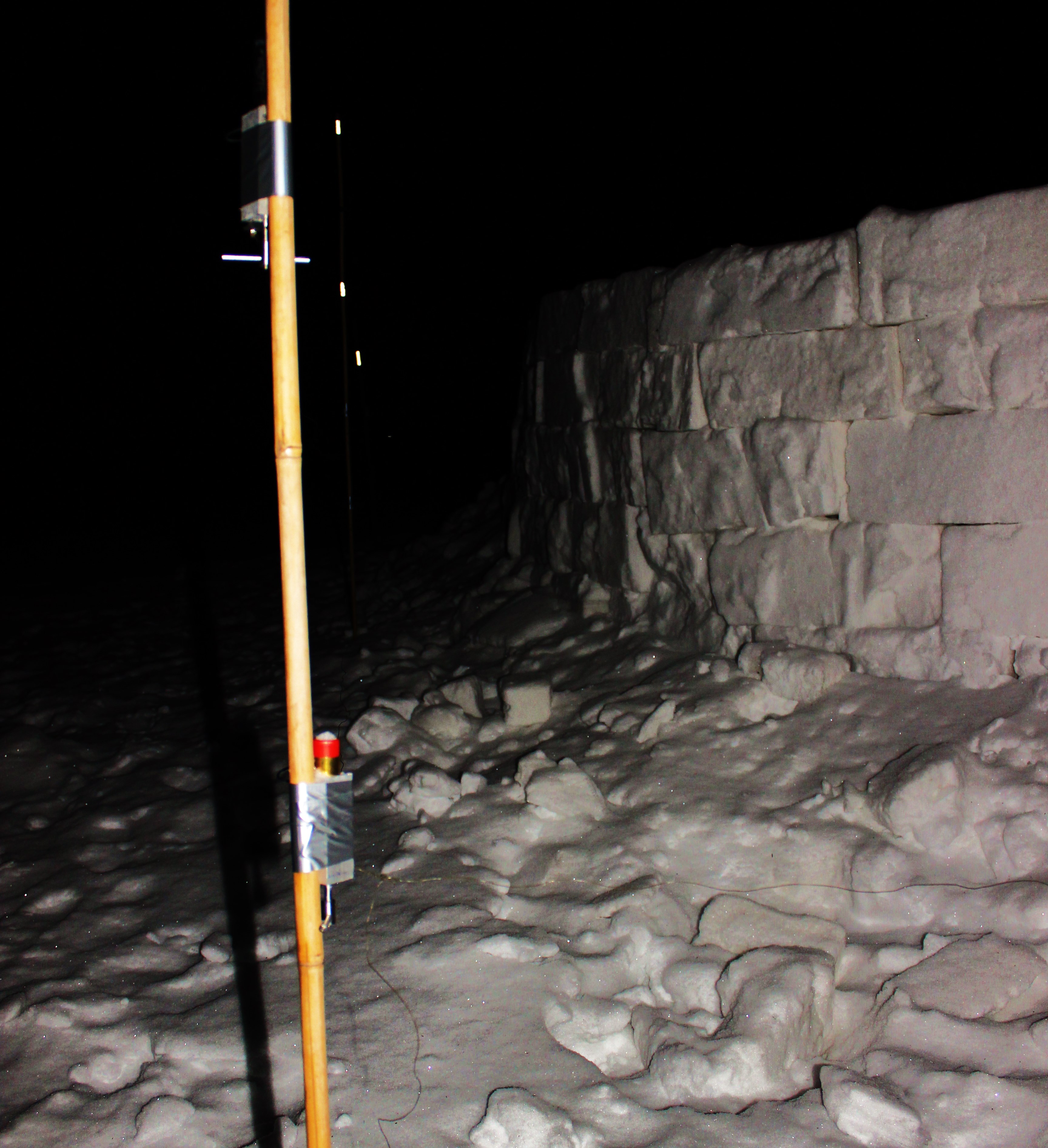 One corner of our tripwire system, Cees’ snow-wall standing proud behind