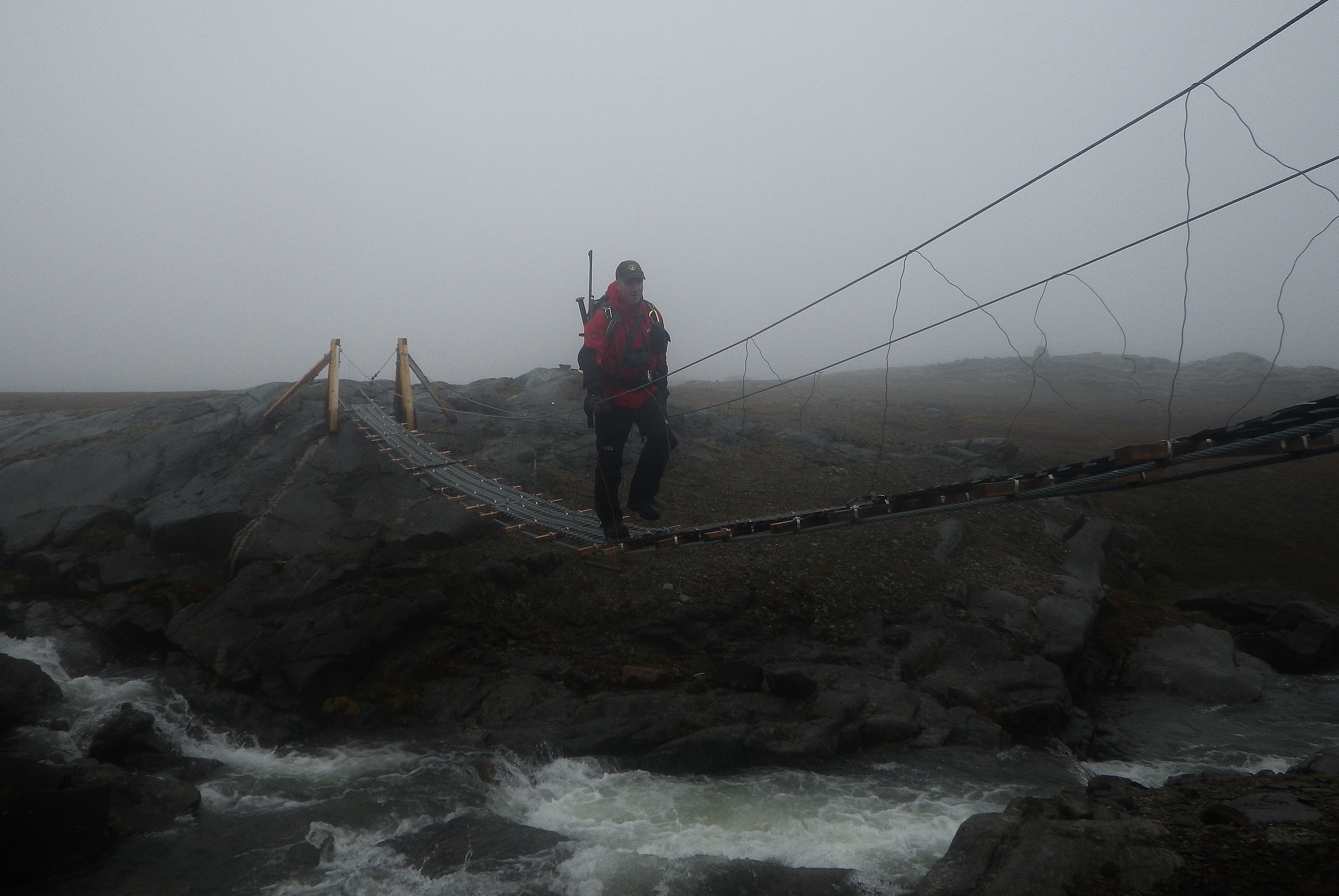 So surprising is it to find evidence of human habitation in this place that you almost cannot believe it when you do. On one memorable occasion myself and another guide, Steffan, had to stop abruptly when leading a shore-party on excursion. Up ahead, we could see malevolent shapes against the tundra. Binoculars confirmed our fears; a trio of muskoxen had spotted us and formed defensive formation. This was a serious matter; the 30-06 rifles we carried would have been too weak to penetrate the heavily-reinforced skull of these beasts should they decide to charge. A standoff ensued, neither us nor the muskox prepared to give an inch of ground, which was only resolved when one of our guests, peering through the binoculas, suggested they might not be muskox at all. The man, an engineer by trade, was quite right. We had spent twenty minutes squaring up to three industrial drainage pipes, inexplicably lodged in the middle of the tundra.